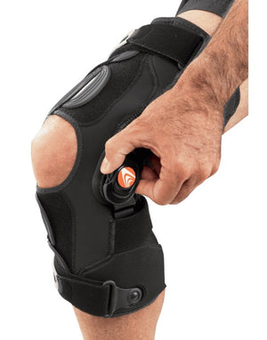 The Freestyle™ OA provides off-loading of the medial or lateral compartment for patients with mild to moderate unicompartmental osteoarthritis. The simple wraparound design allows patients to apply and remove the brace with ease. Comfortable, breathable material provides focused compression around the knee joint. The single-sided low profile hinge encourages patient compliance, while the innovative thumbwheel dial allows precision unloading adjustments without the use of a tool.