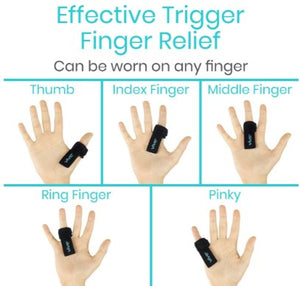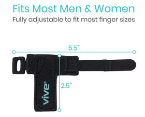 Find relief from stenosing tenosynovitis, or trigger finger with a Vive trigger finger splint. For use on any finger, the aluminum splint supports the finger, reducing stiffness, and preventing the locking up, or catching of the tendons. A breathable neoprene material holds the splint in place with an extra-strong fastener strap for a secure fit throughout daily activities.